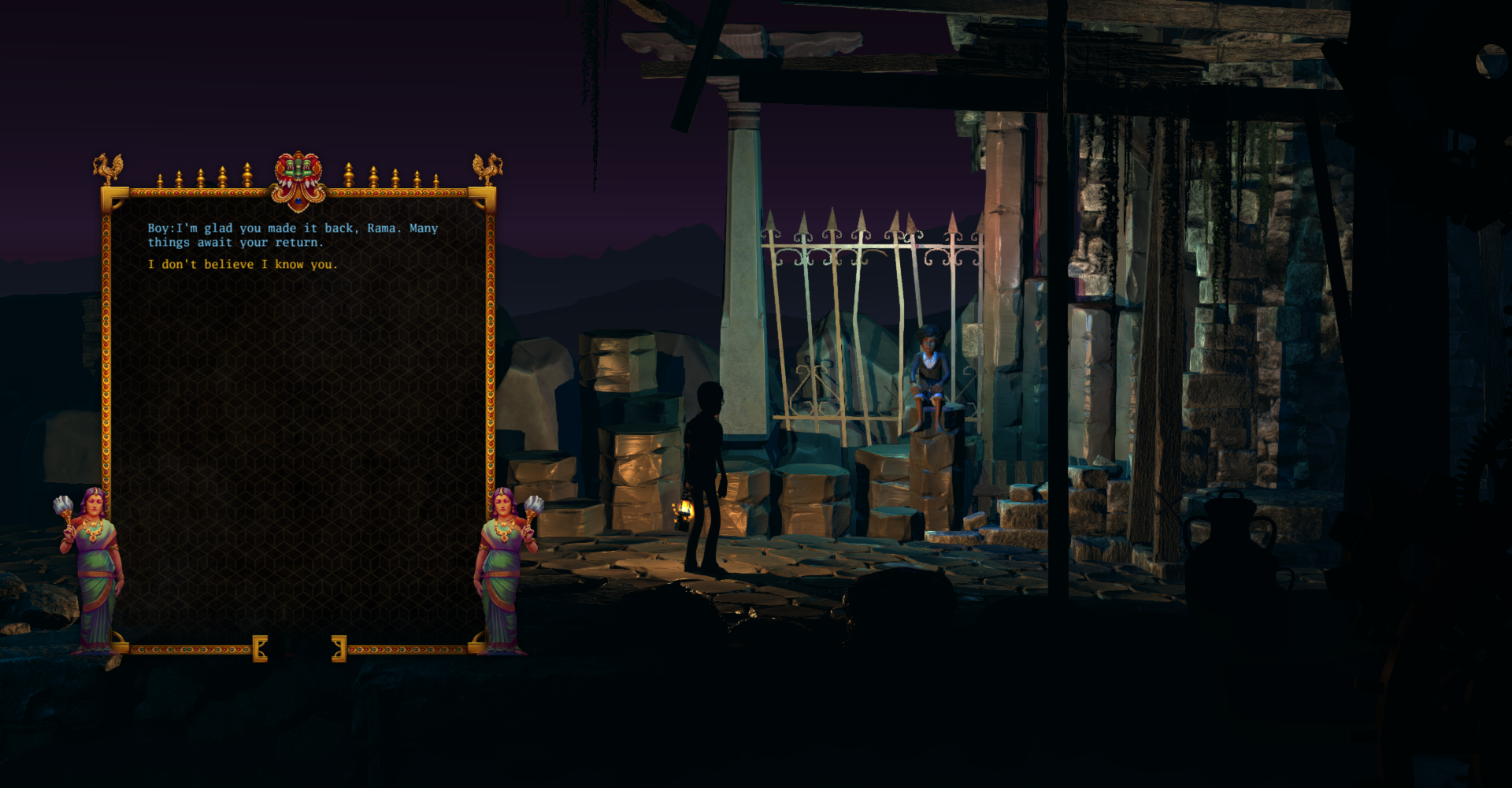 In our point-and-click adventure game demo, Antariksha Sanchar: Episode 0, protagonists journey across South India and outer space on an aircraft powered by art, music, and dance; players can solve automaton puzzles and interact with dynamic avatars in this vertical slice, built in Unity.